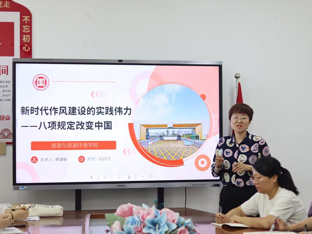 韩建敏强调,新时代党员不仅是变革的见证者,更应成为传承者与践行者,要深刻领悟中央八项规定的实践伟力,以持之以恒的行动自觉锤炼优良作风。最后,韩建敏结合学院工作实际,对全体辅导员、班主任提出三点具体要求:一是以学铸魂强信念,将习近平总书记关于作风建设和立德树人的重要论述作为必修课,深刻领悟“打铁必须自身硬”的政治内涵;二要以行践诺,在校园工作中践行“短实新”文风会风,做学生的贴心服务者;三是以文化人树新风,弘扬“崇实尚俭”理念,以实干精神推动学院高质量发展。