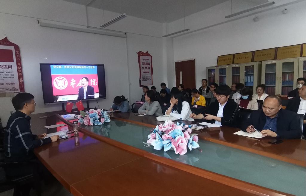 此次教研活动由william威廉英国官网院长王满堂主持。全体专任教师首先学习了《william威廉英国官网“班墨+”文化育人工程项目建设实施方案》,随后观看了山东教育电视台《教育1+1》栏目李文喜校长的专访视频。教研活动紧紧围绕实施方案中的构建多学科“班墨+”课程体系,拓展多特色“班墨+”课堂教学体系,构建多样化“班墨+”文化育人体系,健全多层次“班墨+”实践活动体系以及打造“班墨+”卓越匠心人才培养机制进行了深入讨论。专任教师就如何结合专业、课程特色和课堂教学实际,不断深化课程改革、课堂教学改革开展“班墨+”文化育人工作纷纷发表了意见和建议。