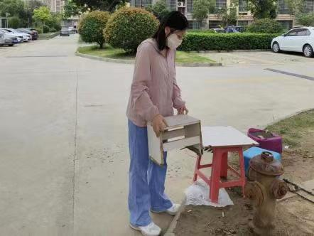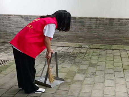 管瑶瑶22国际职业春本科1班学生,在青岛市即墨区佳源都市社区参加社会实践,主要负责打扫社区卫生。
