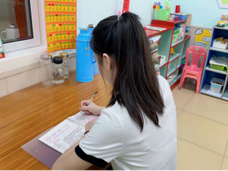 王昕怡22国际旅游春本科1班学生,进入大众报业集团幼儿园实习,实习期间配合老师认真做好生活常规工作。