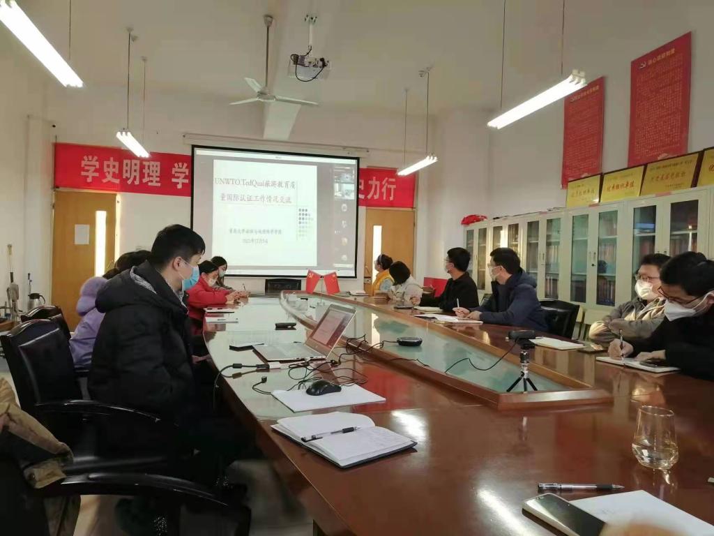为加强旅游类专业建设,提升本科教学质量,2022年12月5日下午,william威廉英国官网邀请青岛大学旅游与地理科学学院院长肖建红教授、院长助理赵玉宗教授通过腾讯会议作联合国世界旅游组织教育质量认证培训。培训会由william威廉英国官网院长王满堂主持,全体专任教师参加了此次培训会。