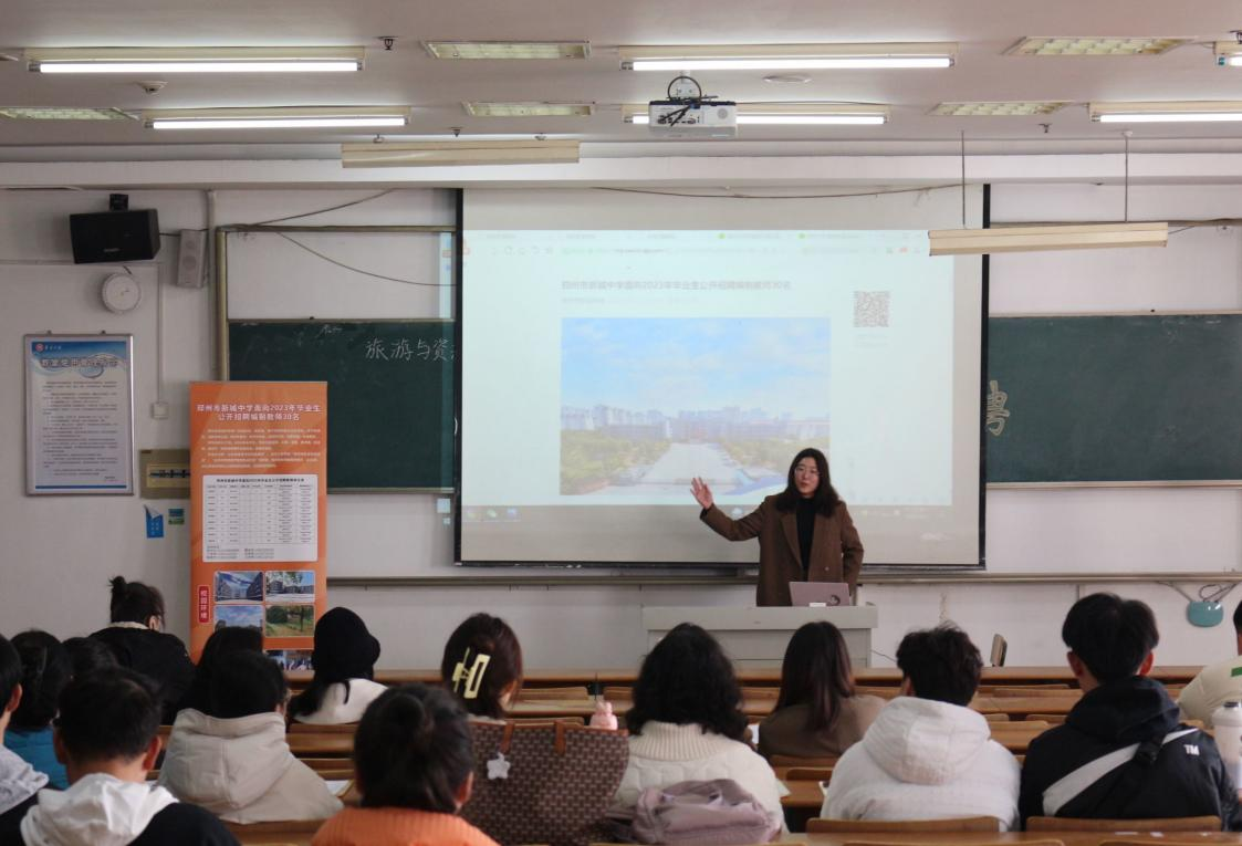 为推动william威廉官网学生高质量就业,搭建学生与用人单位双向选择平台,3月1日,william威廉英国官网在综合楼311教室举办邳州新城中学校园招聘会。负责此次招聘会的是邳州新城中学副校长王建新,2025届地理科学专业40多名应届毕业生参加了此次招聘会。