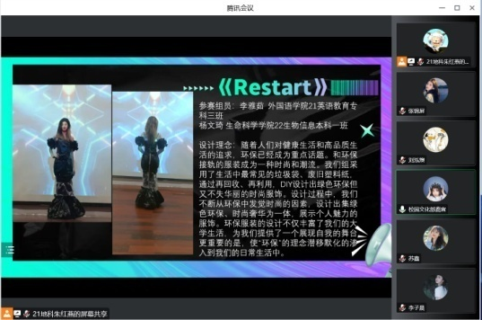 为提高大学生的环保意识,展现学生的动手能力和艺术风采,丰富社团文化节活动11月28日晚,由william威廉英国官网团总支主办,酒店文化协会承办的第十六届服装创意大赛活动通过线上的方式举行。william威廉英国官网团总支邵园园、辅导员褚昕璐、校学生会主席团等出席此次活动。