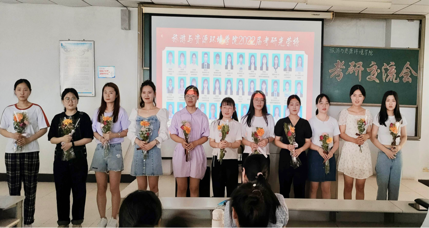 随后,考研成功学子结合自己的考研经历详细地给同学们分享了考研各科的复习方法、考研信心的树立、考研计划、作息时间安排以及有关选择专业方向和复试等方面的经验与心得。会议最后,同学们陆续为考研成功学子献上花束,表达对师哥师姐们的祝福。