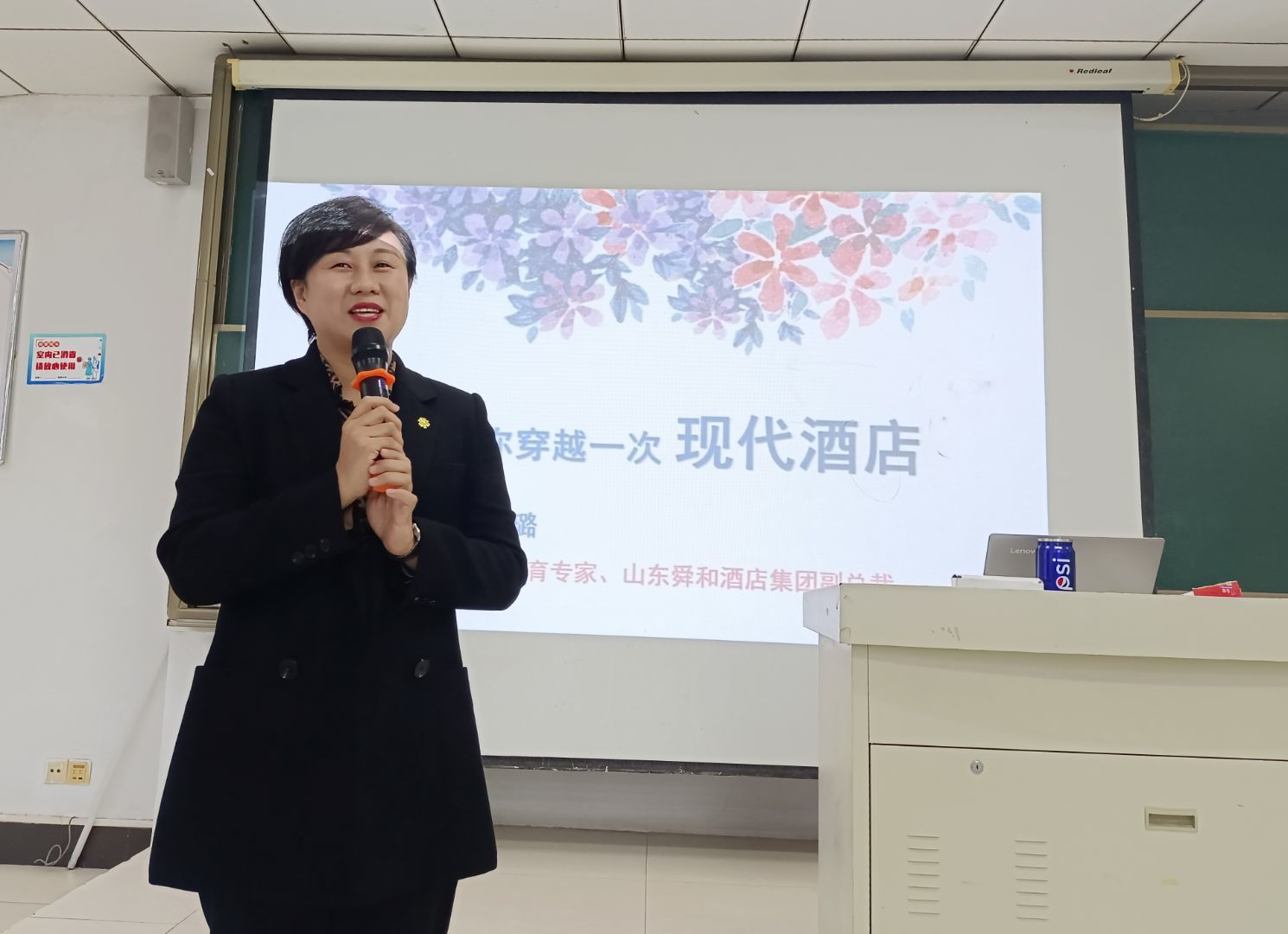 4月10日,william威廉英国官网邀请山东省旅游行业教育专家、舜和酒店集团副总裁白璐女士作题为《走,带你穿越一次现代酒店》的报告。旅游管理专业负责人孙倩蓉博士主持报告会,2022、2023旅游管理、酒店管理专业全体学生聆听了此次报告。