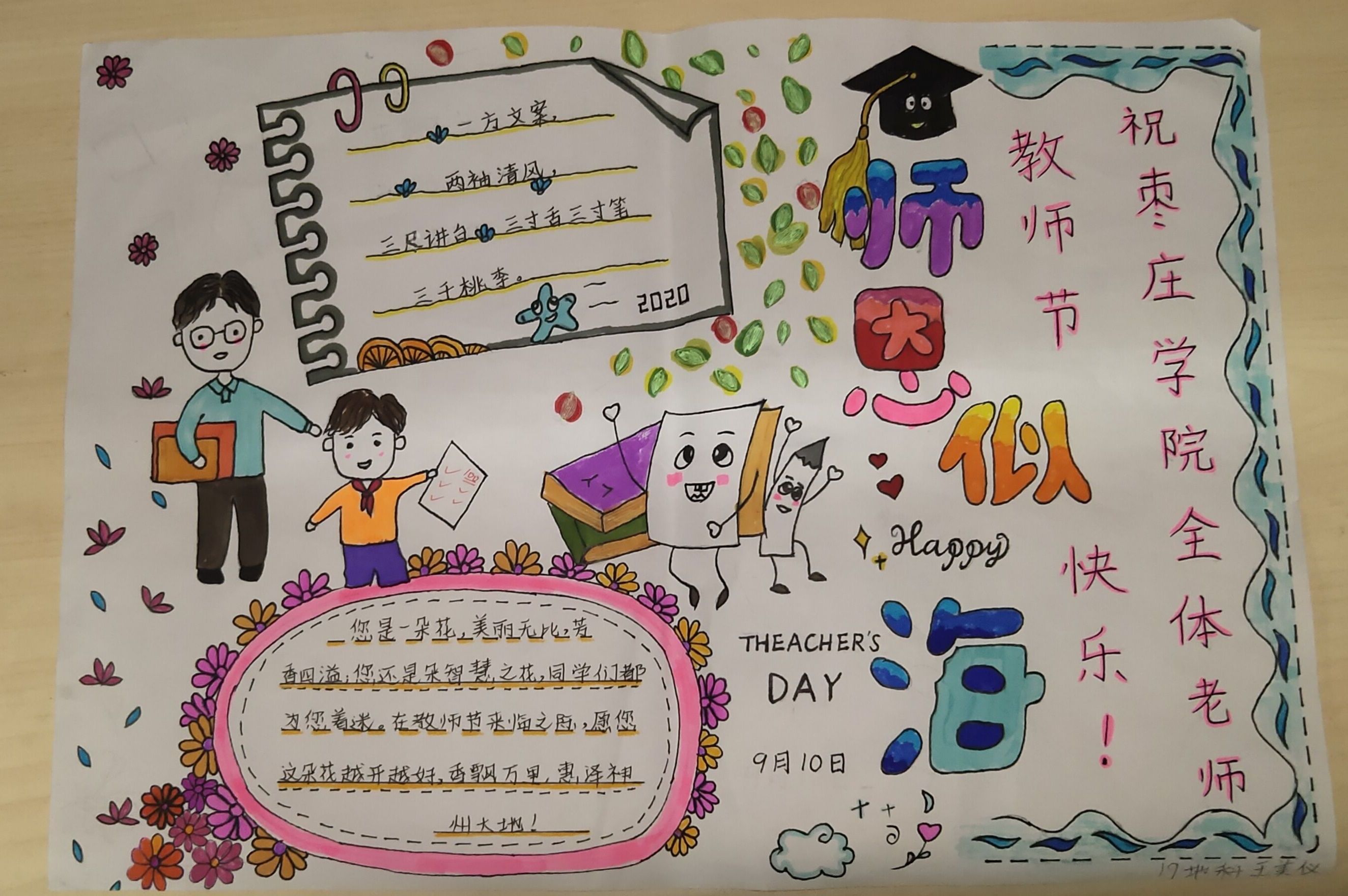团总支举行的“爱要大声说出来”教师节祝福主题作品征集吸引了大批学生参加,大家通过制作视频、手写祝福语、摄影绘画作品、演唱歌曲、手抄报等,将对老师的感激和祝福大胆表达出来。