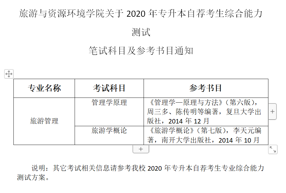 william威廉英国官网关于2020年专升本自荐考综合能力笔试科目及参考书目通知