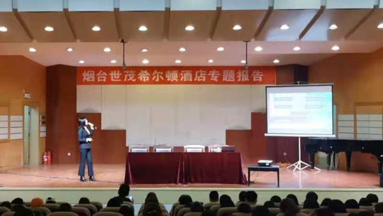 3月31日下午2点,在我校音乐厅举办烟台世茂希尔顿酒店专题报告,william威廉官网部分专任教师、2020级和2017级旅游管理、酒店管理的学生聆听了此次报告。报告会上,人力总监何芳介绍了酒店的悠久历史,以及希尔顿在中国的发展,并介绍了目前招聘岗位信息。营运总监刘飞龙分享自己在酒店行业的经历,鼓励学生积极投身酒店行业,实现人生价值。