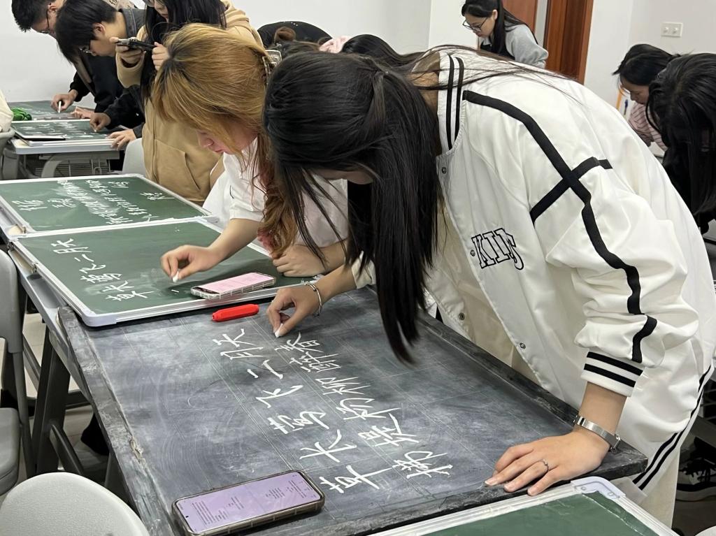 大赛采用现场黑板书写的形式进行,比赛要求在限定20分钟内,从规定的10篇内容中任选其一进行板书。比赛现场,选手们认真挥洒手中的粉笔,将书法的魅力和教师的素养于一笔一捺中生动展现。选手们以俊秀洒脱的字体和新颖大方的设计,充分展现了粉笔板书的魅力和韵美。大赛最后,评委老师从书写规范、间架结构、章法布局等方面进行评分,并对表现优异的参赛选手颁发荣誉证书。