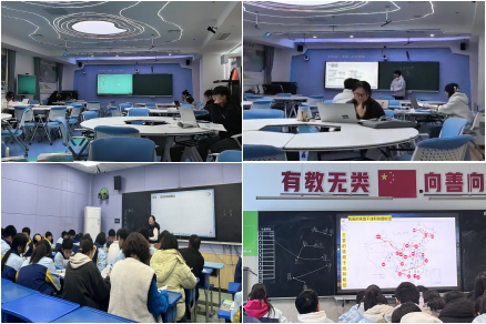 2022级学生首先在中学地理教法实训室分组进行了教育演习,通过限时教学设计、课件制作、课堂教学模拟等环节,体验中学地理教育教学实践过程,总结自己在教学过程中需要改进和完善的地方。之后前往凤鸣中学、十六中听取了中学优秀教师的教学经验分享、示范课,完成了4课时的课堂教学观摩。