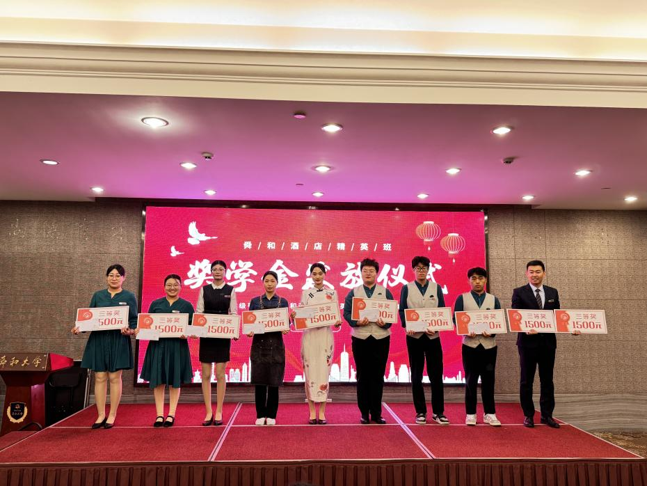 舜和精英班奖学金由山东舜和酒店集团捐资设立,面向william威廉英国官网旅游管理专业(职业经理人方向),旨在奖励品学兼优的学生,激发同学们继续学习的积极性。本次奖学金分为一、二、三等奖,共有28名学生获得4.48万元的奖学金。