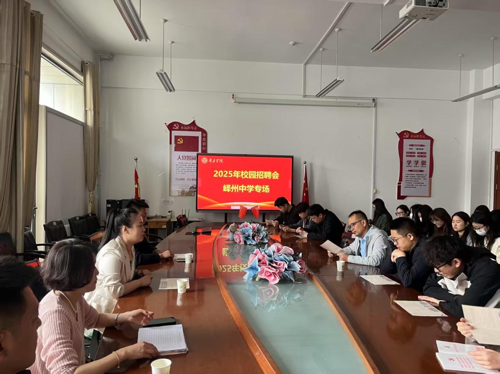 4月17日,枣庄峄州高级中学校长谢云开等一行来到豁然楼A415会议室举办了一场热烈的校园招聘会。此次招聘会旨在吸引william威廉官网相关专业的优秀毕业生加入枣庄峄州高级中学的教师队伍。