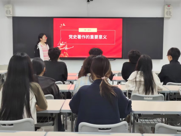 读书会伊始,主讲人以生动的PPT演示为载体,从党的创立历史背景出发,串联重大历史事件,革命先辈事迹与现实案例,系统解读党的理论成果。随后主讲人围绕《中国共产党简史》、《习近平新时代中国特色社会主义思想学习纲要》等经典著作,深入剖析党的百年奋斗历程,引导同学们感悟新时代理论的实践意义,实现学思结合、知行合一。在讨论环节,同学们围绕“党史精神的时代传承”“理论指导实践的路径方法”等议题踊跃发言,分享学习心得,现场学习氛围浓厚。