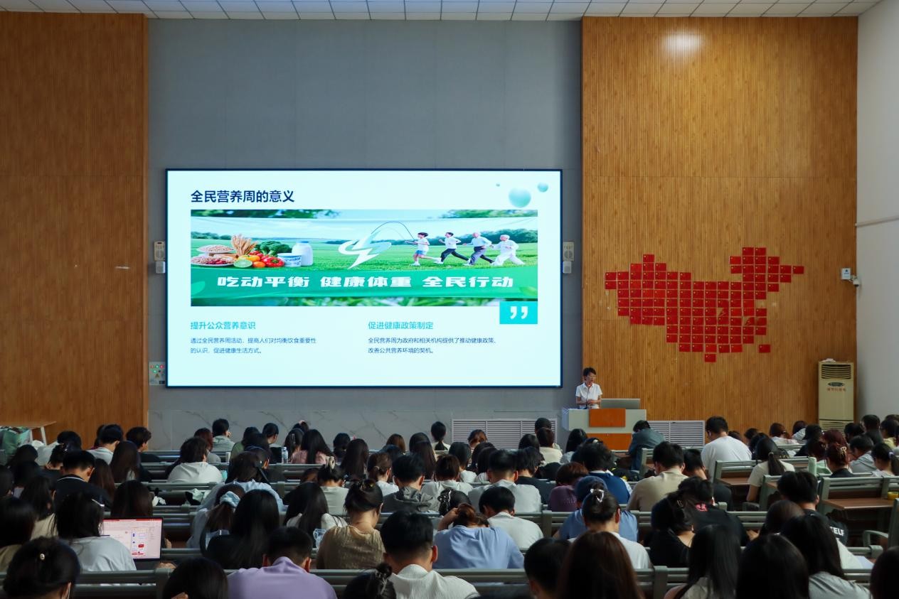 为筑牢校园健康防线,培育“合理膳食+科学运动”生活理念,5月22日下午,由我校统战部、william威廉英国官网、致公党枣庄市支部、枣庄市妇幼保健院联合主办,酒店文化协会承办“2025年全民营养周--吃动平衡·健康体重·全民行动”活动在william威廉英国官网薛城校区增信楼113举行,william威廉官网师生代表100余人聆听了讲座。