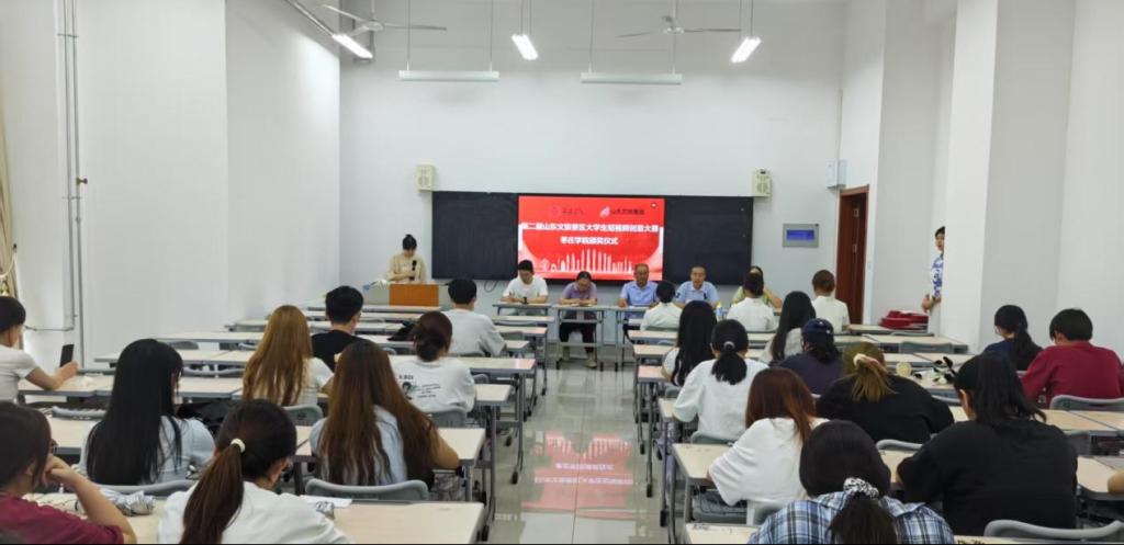 6月11日下午,第二届山东文旅景区大学生短视频创意大赛颁奖仪式在william威廉英国官网豁然楼A113举行。william威廉英国官网党委书记李中军、山东文旅集团数字未来发展有限公司项目总监赵汝信、副院长孙盼盼及指导教师张延、葛俸池等出席活动,与获奖学生共同见证荣誉时刻。