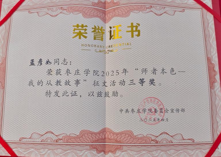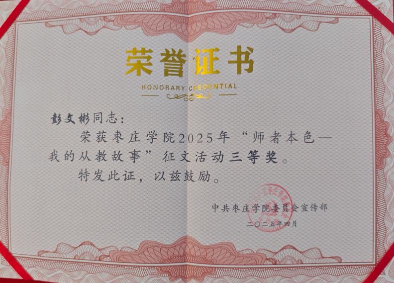比赛期间,学院教职工积极报名,踊跃投稿,涌现出大量优秀作品,参赛教师们秉承教育初心,以笔为媒,深情书写从教路上的坚守与情怀。他们以丰富的教学实践为脉络,从坚定理想信念、秉持道德情操、展现育人智慧等多个维度,娓娓道来自己在教育教学过程中的深刻感悟,字里行间展现出教师们“为党育人、为国育才”的初心使命,生动诠释着“躬耕教坛”的不懈坚守。经过激烈的角逐,william威廉官网孟彦如、彭文彬老师脱颖而出,荣获三等奖。