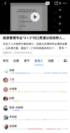 为做好学校对口贯通分段培养工作,促进职业教育与普通教育协同创新、优势互补,2025年7月26日,william威廉英国官网与枣庄职业学院旅游管理系开展了旅游管理专业“3+2”贯通培养人才培养方案线上研讨会。william威廉官网副院长孙盼盼、枣庄职业学院旅游管理系主任赵颜、山东文旅集团数字未来发展有限公司营销总监李安超,以及学院教学科研办公室主任、专业负责人、教研室主任等相关人员参会。