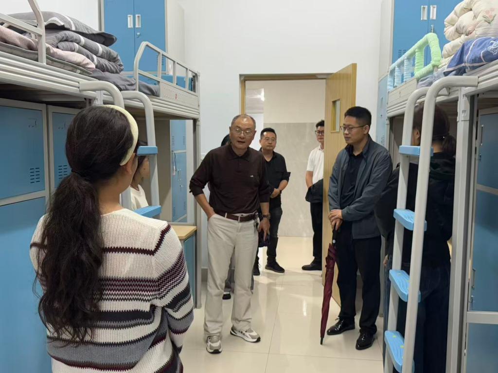 走访期间,学院领导班子与新生们亲切交流,现场氛围轻松融洽。领导们从生活细节入手,细致地询问每一位新生“是否习惯住宿环境”“入学以来是否遇到困难”,用朴实关切的言语传递温暖。领导们还特别关心少数民族学生的适应情况,不仅仔细询问他们对饮食、气候等方面的适应程度,还耐心倾听并解答他们在学业衔接、文化融入上的困惑。面对领导和老师们的关心,新生们也敞开心扉,积极分享初入校园的体验和感受,言语中充满对大学生活的美好期待。最后,领导鼓励同学们要尽快完成角色转换,珍惜大学时光,在未来的学习生活中不断探索、增长才干,收获属于自己的精彩人生。