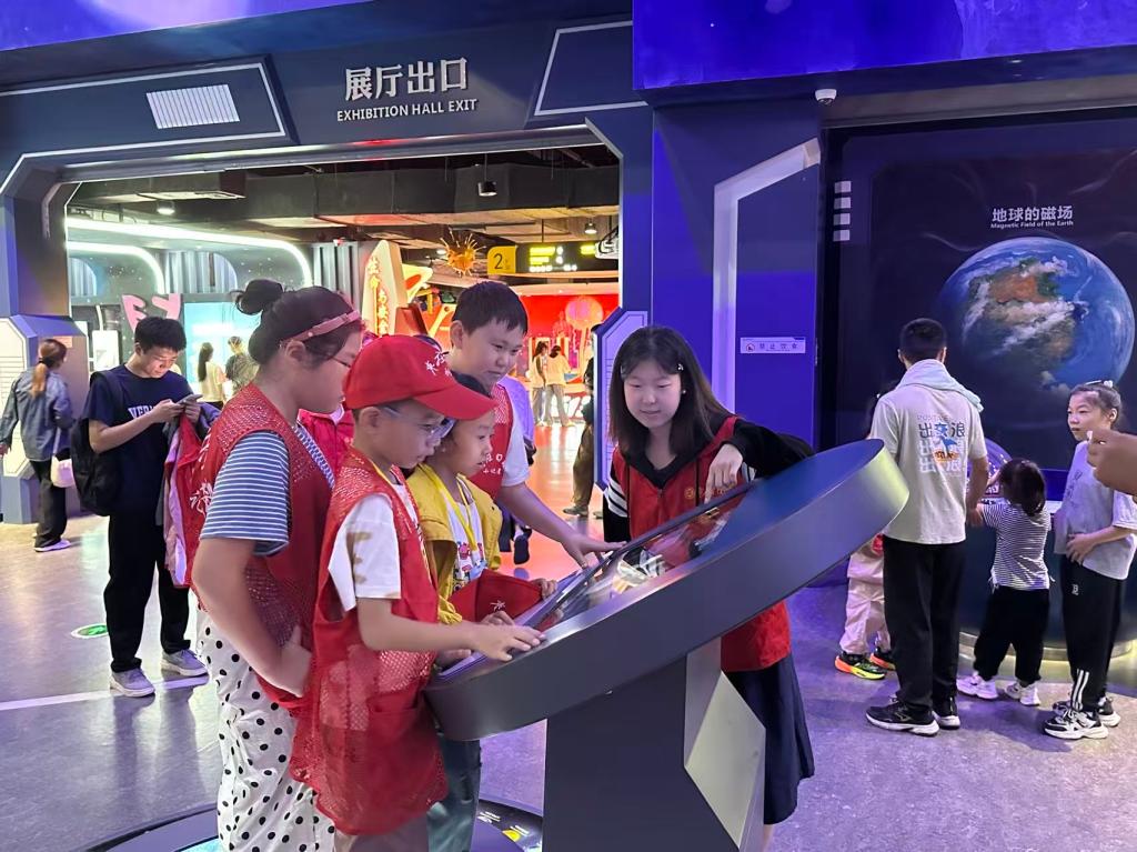 作为学院“志愿服务”系列活动的重要组成部分,本次活动由学院党员骨干牵头筹备。活动现场,党员志愿者们化身“科普讲解员”、“场馆引导员”,以饱满的热情投入志愿服务工作:一方面主动提供场馆路线指引等便民服务,以热情周到的举措为游客打造便捷、舒心的参观体验,充分展现了党组织的战斗堡垒作用和服务群众的宗旨意识;另一方面,结合展品特色,用通俗易懂的语言解读科技原理,生动讲述背后的科学故事,带领观众们沉浸式感受科技文化的独特魅力。面对青少年团体,党员志愿者发挥先锋模范作用,巧用趣味讲解和互动体验,将抽象的科学知识转化为具象的实践感知,激发孩子们探索未知、热爱科学的浓厚兴趣,充分展现其积极主动、细致暖心的青春服务风貌。