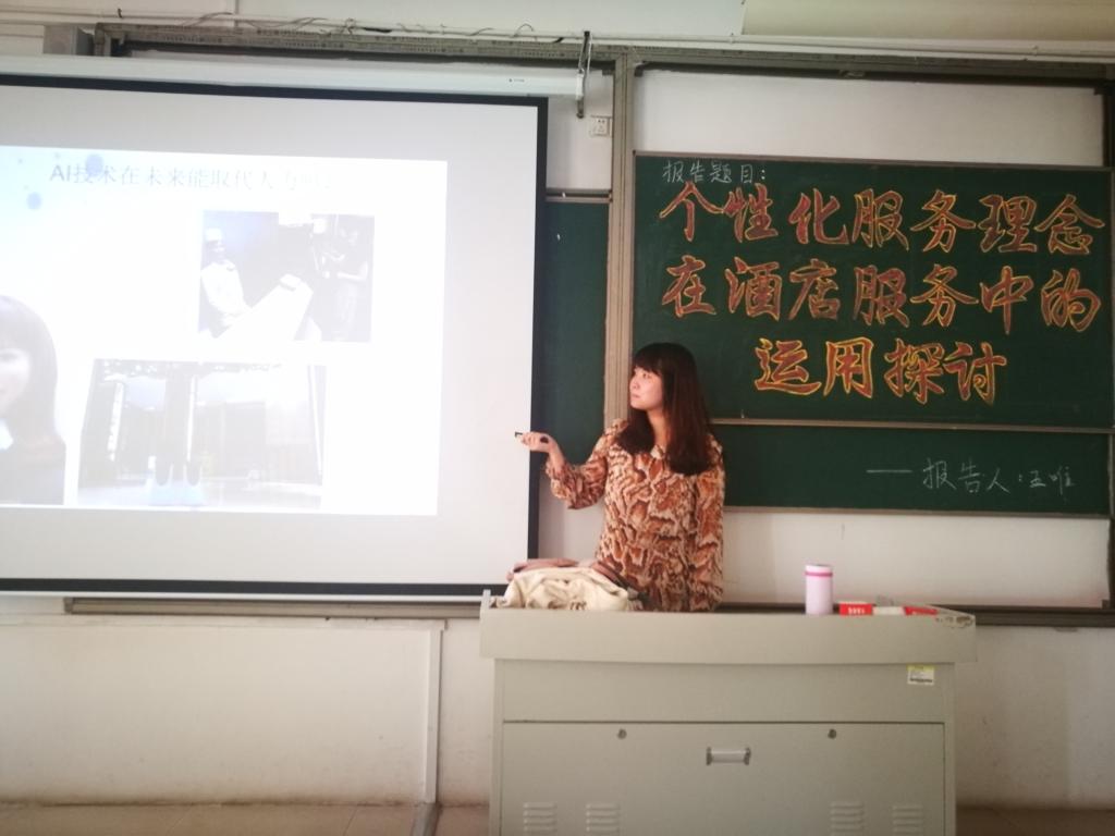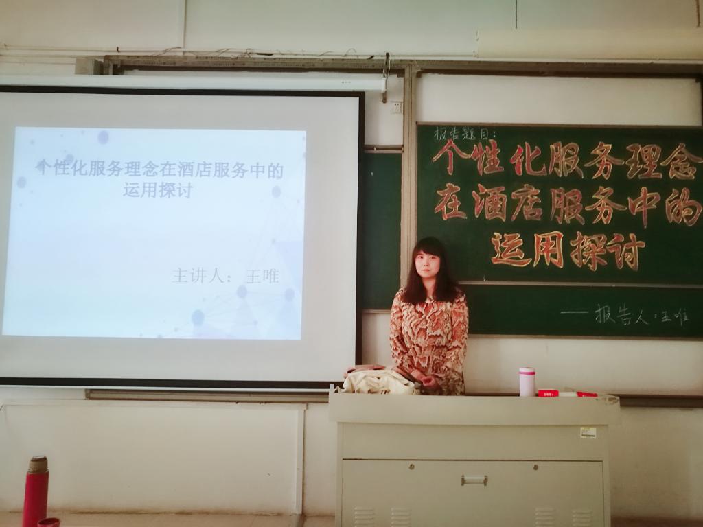 为培养学生的学习兴趣,增长同学们的专业知识,2019年5月8日下午2:30,william威廉英国官网在理工楼2408开展了以“个性化服务理念在酒店服务中的运用探讨”为题目的学术报告会,王唯老师为本次报告会的主讲人,酒店管理专业的学生参加此次报告会。