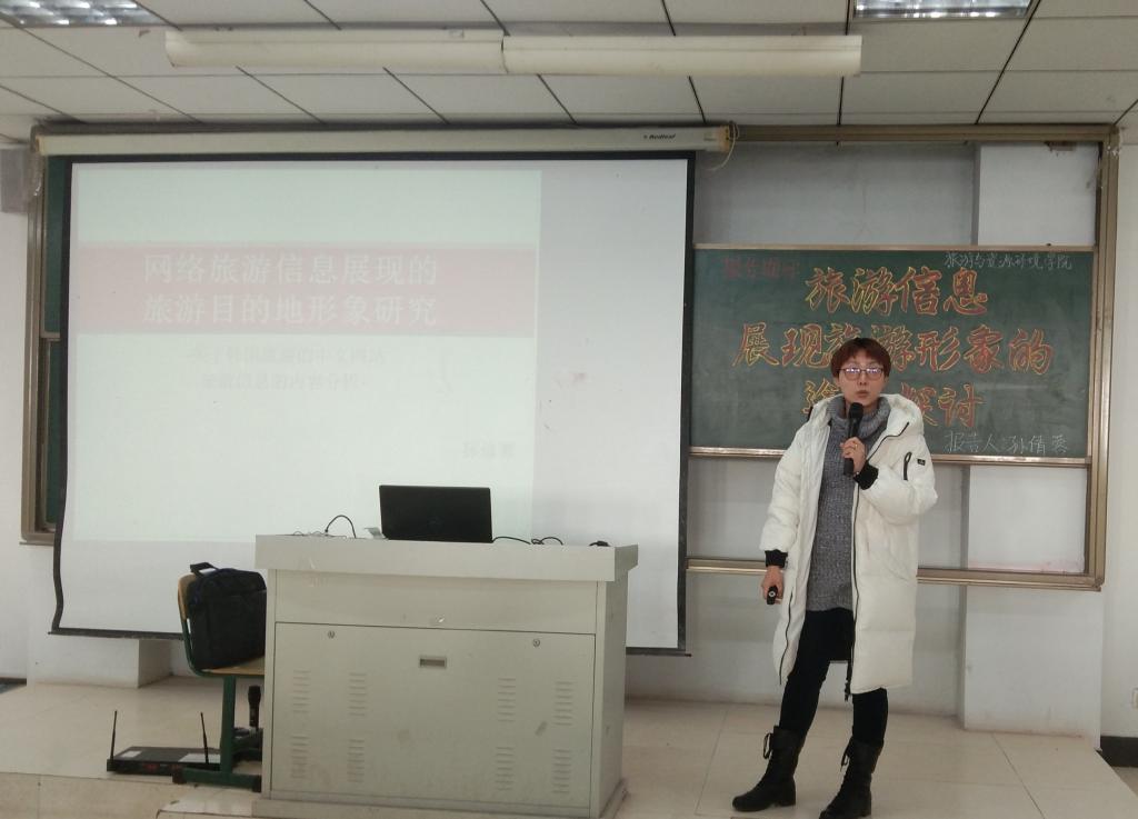 报告会伊始,孙倩蓉博士介绍并强调:网络飞速发展的时代,旅游信息的收集、分析和应用具有深远的重要性。随后,通过对韩国旅游中文网站中旅游信息内容的分析,向同学们展开了细致讲解并分享了分析和研究学术报告、组织和撰写论文的经验和方法。讲解结束后,孙倩蓉博士与同学们展开互动,对同学们提出的问题一一解答。最后,孙老师对本次报告会作了总结。