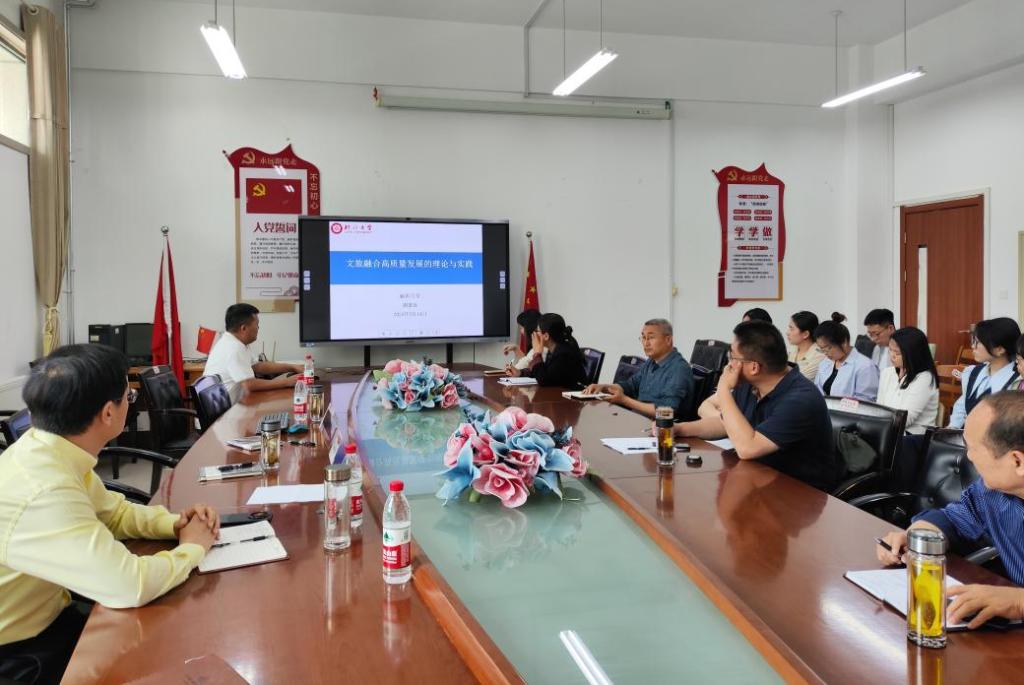 赵磊教授以“国家社科基金年度项目申报论证”为题,从申报表填报关键环节、活页与申报书内容、选题来源、选题要求、选题依据填写、国内外相关研究的学术史梳理、独到学术价值和应用价值、研究内容填写(主要目标、重点难点、整体框架、研究计划及其可行性等)、学术观点/研究方法等方面的特色和创新、成果形式/宣传转化及预期学术价值和社会效应等、研究基础等方面进行了详细的讲解,并对各部分的注意事项进行了举例说明,对如何选题进行深入的分析。最后,简要介绍了如何申报国家社科基金后期资助项目暨优秀博士学位论文出版、优秀学术著作再版项目。谢爱良教授以“文旅融合高质量发展的理论与实践”为题,由电影《哪吒》引出文旅融合高质量发展,详细介绍了文旅融合高质量发展的理论框架,包括概念内涵、基本特征、理论基础、理论要素、理论模型、评价指标体系、研究趋势等,又通过一系列具体案例进行了详细说明。