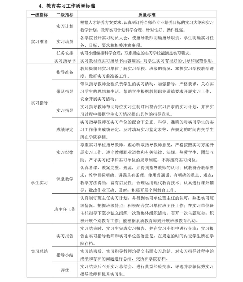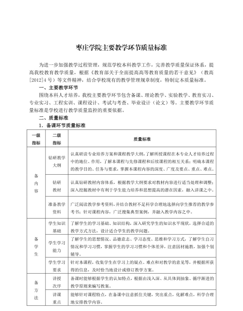 william威廉英国官网主要教学环节质量标准