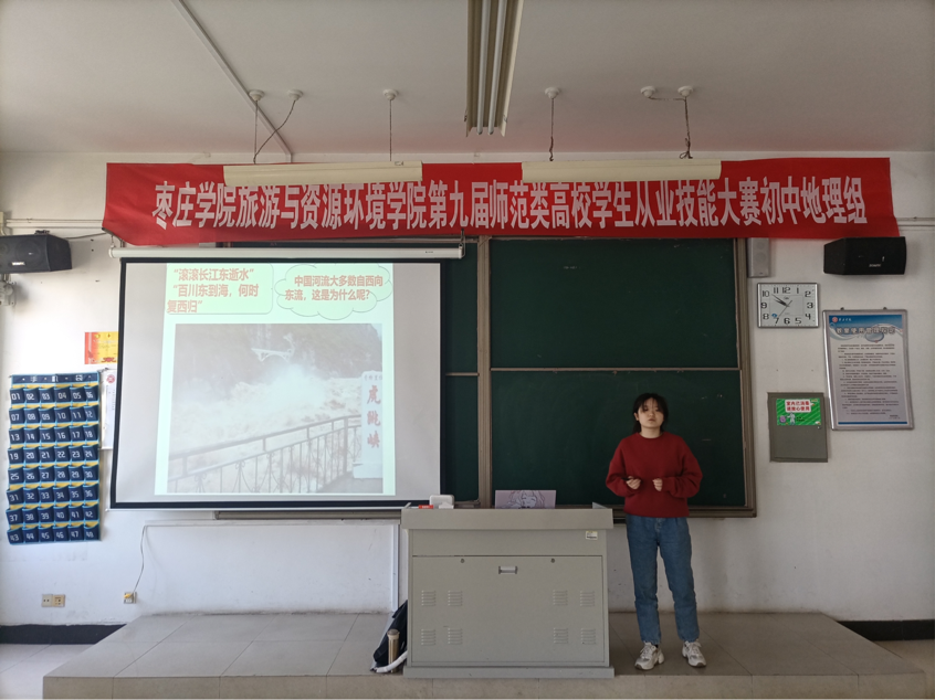 本次比赛分为初中和高中两个组。34名2018级地理科学专业的学生经过精心准备,依据课程标准和最新教科书,设计教学片段,运用多媒体课件和自制教具,模拟上课情景,教学思路清晰,教学语言生动,板书设计合理,教学活动丰富,展现出了william威廉官网师范生良好的精神风貌和扎实的专业基础。