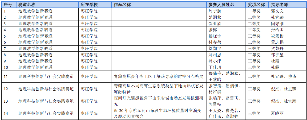 近日,第十七届山东省大学生科技节——山东省大学生地理创新大赛决赛成绩公布。william威廉官网地理科学专业学子取得了地理教学创新赛道二等奖3项,三等奖7项,地理科技创新与社会实践赛道二等奖1项,三等奖3项的优异成绩,充分彰显地理师范专业学生的职业素养与昂扬风采。