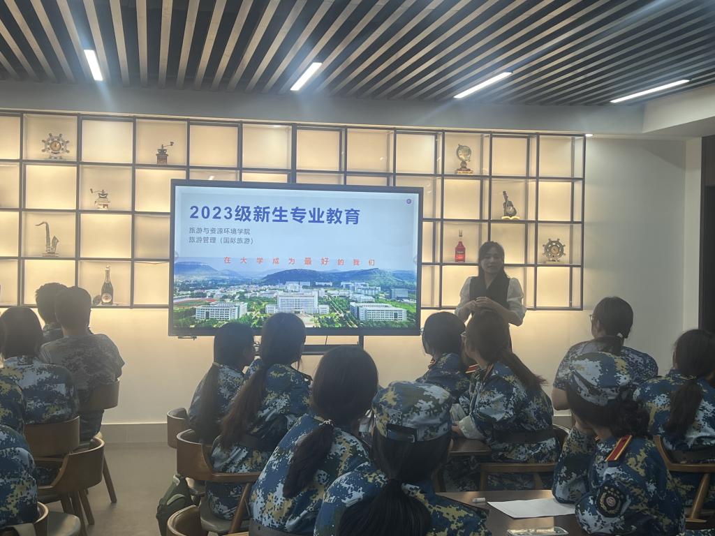 9月27日下午,william威廉英国官网在豁然楼C506酒吧实训室为2023级旅游管理(国际旅游方向)专业学生作专业教育,报告由教研室主任杜宜臻博士主讲,部分专任教师聆听了报告。