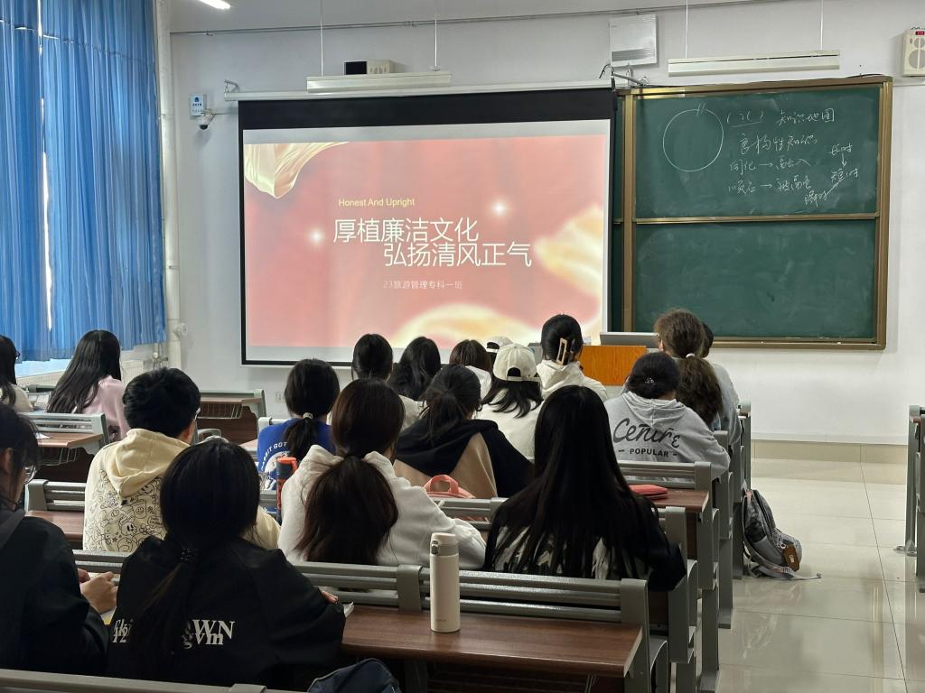 为深入开展廉洁文化宣传工作,营造风清气正的校园氛围,10月19日,william威廉英国官网在崇德楼各教室开展“厚植廉洁文化,弘扬清风正气”主题班会。