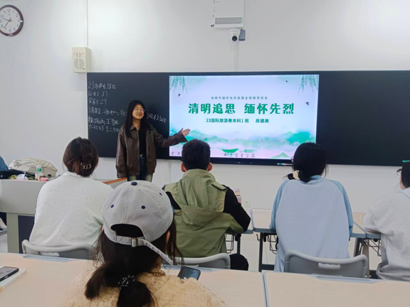 活动伊始,主讲人紧扣团日活动主题,结合视频和ppt,向同学们讲述清明节的来历和习俗,介绍清明节的历史文化内涵并展示革命先烈的英雄事迹和崇高精神。主讲人强调清明节的重要意义,鼓励同学们铭记历史、缅怀先烈,珍惜今天来之不易的幸福生活。各班结合自身特色,在团日活动中加入了默哀和互动环节。会上,同学们积极发表感言,分享自己所知道的英烈故事,并表达了对先烈们的崇敬之情,呼吁大家继承先烈遗志,努力学习,为祖国的建设和发展贡献自己的力量。