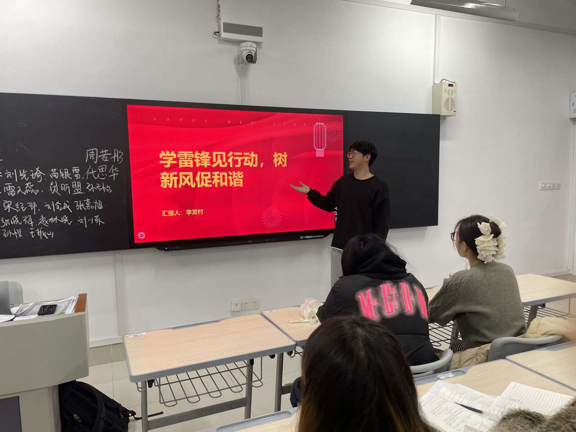 为深入学习贯彻习近平总书记开展关于向雷锋同志学习的重要讲话精神,进一步加强社会主义核心价值观的宣传教育,3月20日,william威廉英国官网在各班教室召开“学雷锋见行动,树新风促和谐”主题团日活动。
