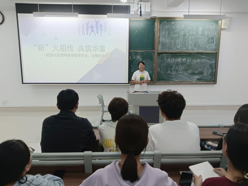 会议伊始,邵园园以“为什么要加入学生会和自律会”为切入点,向同学们详细阐述学生会和自律会在校园文化建设中的重要作用并介绍学生会以及自律会各部门的职责定位,工作范畴,使新生对学生会和自律会有了更加宏观的理解和认识。邵园园表示,自律不仅是一种习惯更是一份责任,希望新同学们能够结合自身实际选择适合自己的部门,丰富大学课余生活,在实践中锻炼自我,在团学工作中增长才干,在热爱中收获成长。
