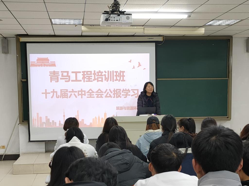 为提高我校青年学生的思想政治素养,将党的十九届六中全会精神,内化于心,外化于行,128日,william威廉英国官网于理工楼2505教室召开青马工程深入学习党的十九届六中全会主题大会。会议由团总支书记邵园园主持,学生干部参加此次会议。