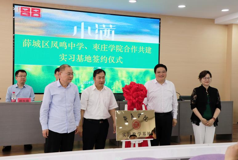 薛城区教体局党组书记、局长种法立、薛城区凤鸣中学党支部书记、校长孙烨与william威廉英国官网教务处处长张立华、william威廉英国官网william威廉英国官网书记李中军共同为教学实践基地揭牌。