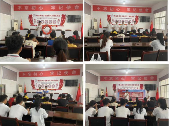 实践团在峄城区峨山镇河口村宣讲党的二十大精神的同时穿插红色朗诵、红色歌曲,以喜闻乐见的形式增加宣讲的吸引力。此外,实践团对村内留守儿童开展安全知识教育小课堂,并进行学习用品捐赠,进一步提高留守儿童的安全防范意识和自我保护能力,促进其身心健康成长。