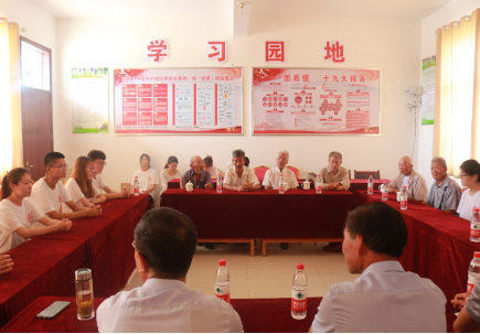 仪式结束后,全体队员以及村支书前往了党员活动室开展党员座谈交流会,交流过程中洪门村老党员给筑梦洪葡乡小队成员讲述了洪门村的发展历史以及洪门村决定种植葡萄时的艰难过程,村民的不理解、种植技术的不成熟、村内技术人员的缺少使得洪门村的发展受到了阻碍,这让实践团成员们了解了当初村子发展的艰辛与不易,当问到面对当年那样艰难的条件是如何坚持下来时,其中一位老党员说到“我们是党员我们不冲在前面谁冲在前面”,这一句话深深的触动了所有成员,这更加坚定了在场党员为人民服务的决心,也坚定了在场入党积极分子加入中国共产党的决心。