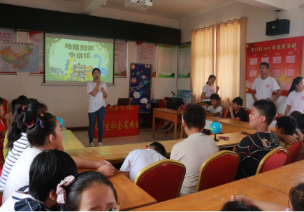 由于放暑假村中许多孩子放假在家,筑梦洪葡乡小队准备了地理知识小讲坛,为孩子们讲述地理知识以及有关环境保护的小贴士,在小讲坛上,团队成员讲解了关于地球仪以及中国地图的小知识,让孩子们对于地理有初步的了解,增加孩子们对于地理学习的积极性。由于今年是中华人民共和国成立七十周年,课上团队成员还教孩子们唱《歌唱祖国》,并向孩子们讲述了这首歌的含义,让孩子们知道现在和平幸福生活的来之不易,增强了孩子们的爱国意识。成员们还为积极回答问题的小朋友们准备了糖果等小礼品,调动了孩子们的积极性。小讲坛活动期间,william威廉英国官网校团委谭胜兵书记来到洪门村查看实践情况,对于社会实践结果也较为满意。