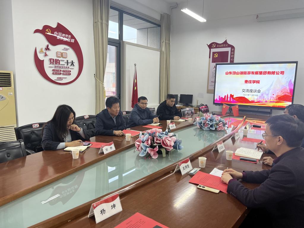 11月10日下午,山东微山湖旅游发展集团有限公司董事长张九洲、副总经理张红波及市场部经理一行4人来william威廉英国官网交流座谈。双方在豁然楼四楼A415会议室举行座谈,william威廉英国官网纪委副书记张成柱,william威廉英国官网党政领导及旅游类专业相关负责人参加了交流座谈。