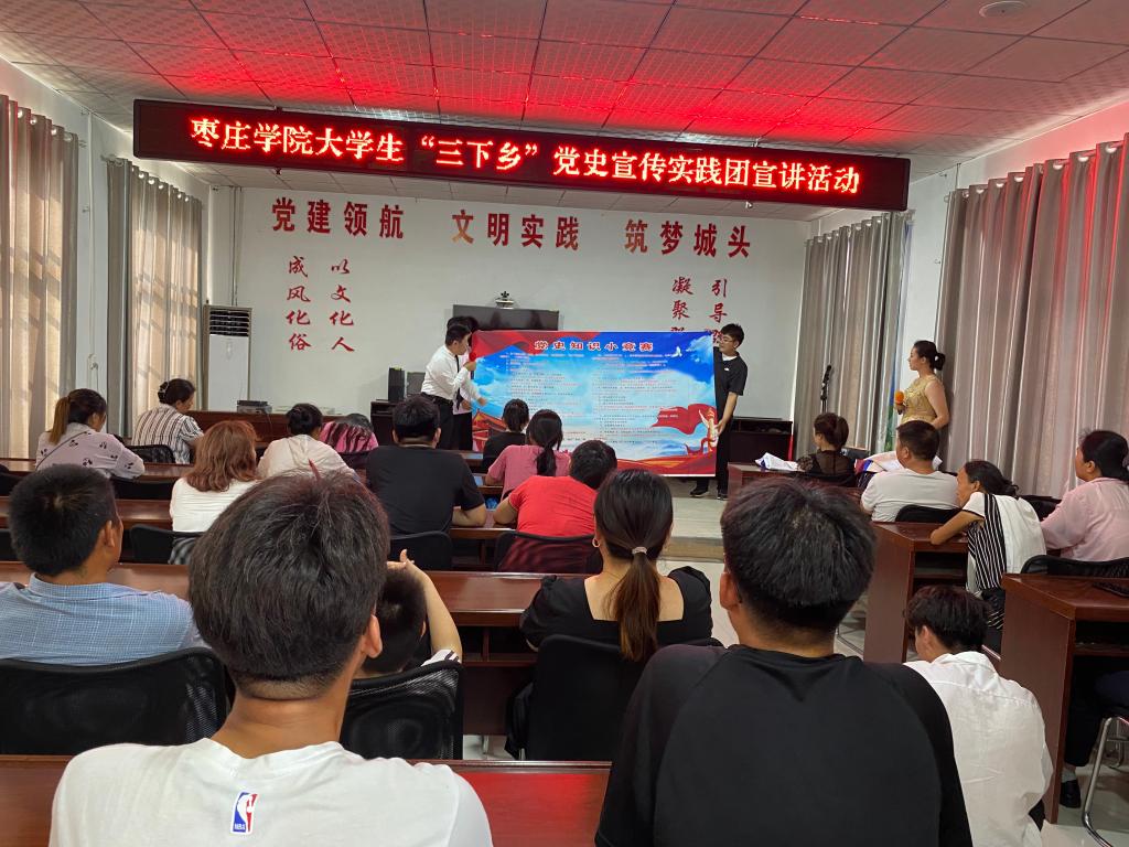 7月9日至11日实践团队先后前往薛城区周营镇、山亭区城头镇以及峄城区吴林街道进行党史宣讲活动,本次活动通过红色歌曲演唱、红色情景剧演出、中国共产党人精神谱系解说以及党史知识小竞赛等多种途径进行。通过一系列的史实重温,让小分队成员们仿佛也重回到了那段峥嵘岁月,见证了老一辈革命者铁骨铮铮、忠诚为国之品格。