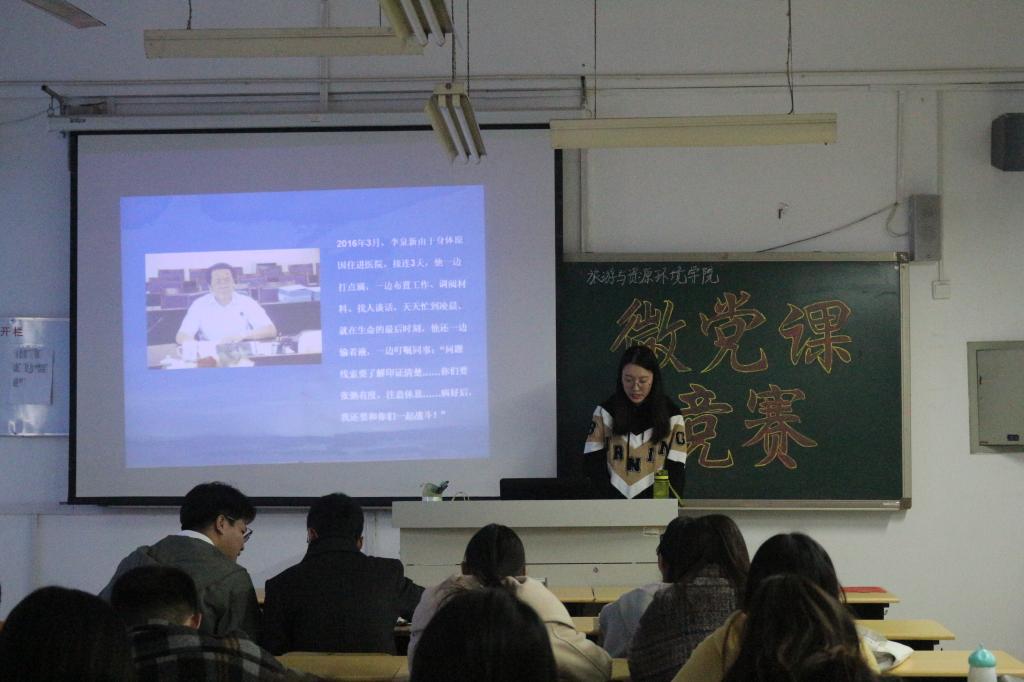 本次比赛共有九名学生党员参赛,入党积极分子现场观摩。本次比赛以“新时代党员”为主题,聚焦党员作用的发挥及学风建设。比赛现场以微党课的形式进行,每位课程展示时长为10分钟。参赛选手紧扣主题,精心准备,结合PPT、视频等媒体进行讲解,课程围绕党的基础理论知识、党的路线方针政策、热点解读、党史党情等开展,展现了多样化与内涵兼具的课堂形式。各位选手语言凝炼,观点明确,深入浅出,经过激烈的角逐,袁锋荣获一等奖,李玉洁、钱梅静获得二等奖,范程龙、杜鑫、欧阳红获得三等奖,吴耀启、林真真、姚晓嵩获得优秀奖。