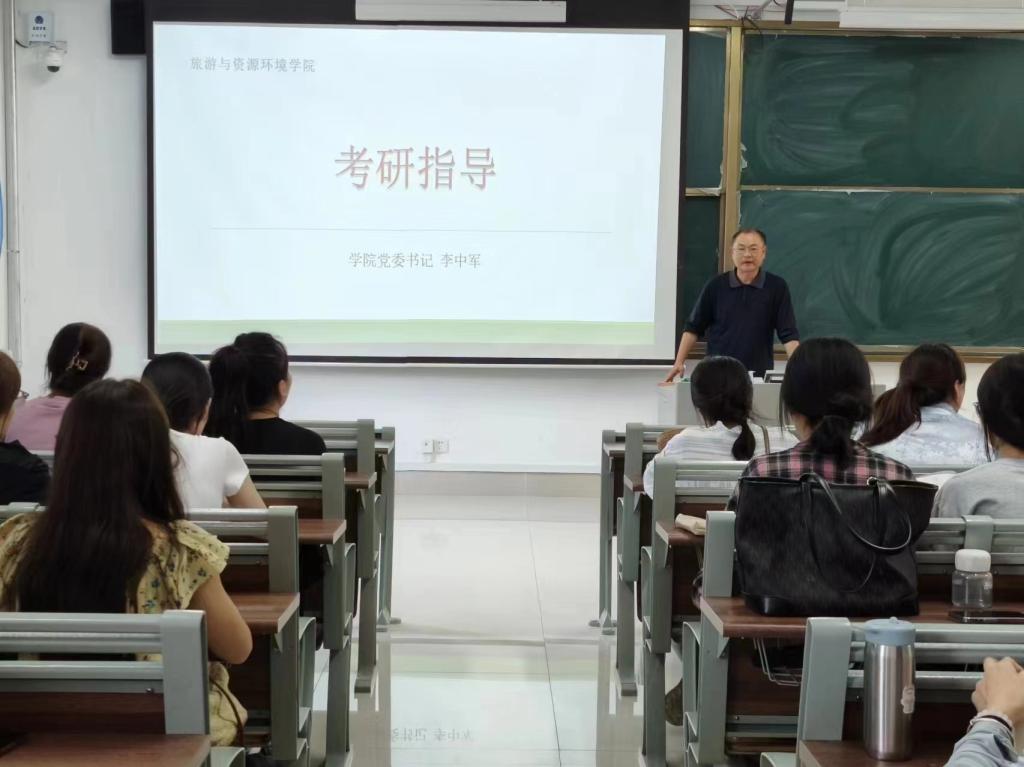 李中军分别从考研的必要性考研基础知识、2024届学生考研总结、如何选择一志愿学校、思考和想法五个方面向同学们讲解当前旅游与酒店专业的考研现状。会上,李中军强调了考研对于个人学术发展和职业规划的重要性,并指出随着旅游与酒店行业的蓬勃发展,当今社会对高素质、高层次人才的需求日益旺盛。李中军指出,考研的关键在于学好英语,鼓励同学们要有恒心和毅力进行各科目的复习,考研不仅仅是对知识的检验,更是对心态和毅力的考验,并鼓励同学们坚定信念,以积极的心态面对考研路上的挑战。